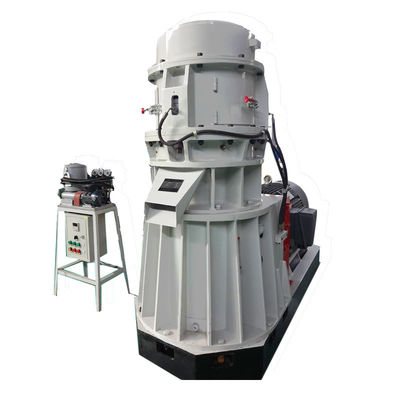 The organic pellet press machine working principle, the motor power is transmitted to the main shaft by the transmission mechanism, and the main shaft drives the die to rotate; the material rotates with the die and is forced to be squeezed between the die and the roller, under the above action mechanism, the livestock manure material is continuously pressed into the holes of the flat die, and finally pressed from the die hole to form columnar type pellets, which are finally rolled out from the discharging port through the material discharging device.